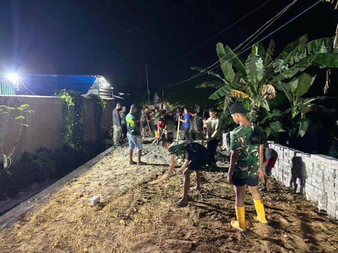 Aksi lembur ini merupakan bukti nyata kemanunggalan TNI dan rakyat dalam mengejar target pembangunan jalan pemukiman yang selama ini diimpikan warga.
