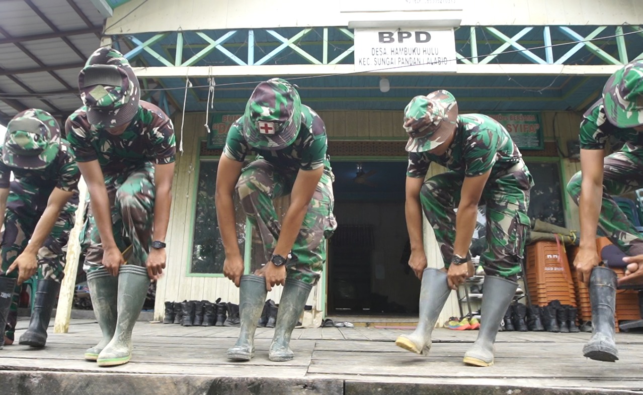 Kebersamaan tersebut tampak jelas saat para personel berjalan menyusuri jalan desa menuju sasaran TMMD di Kecamatan Sungai Pandan, Kabupaten Hulu Sungai Utara. Obrolan santai dan candaan sederhana menjadi penyemangat, sekaligus mempererat kekompakan di tengah padatnya agenda pekerjaan fisik.