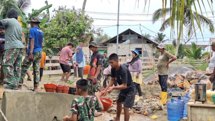 Semangat gotong royong ini diharapkan tidak hanya mempercepat penyelesaian target fisik, tetapi juga mempererat tali silaturahmi yang harmonis antara prajurit dan masyarakat sekitar.