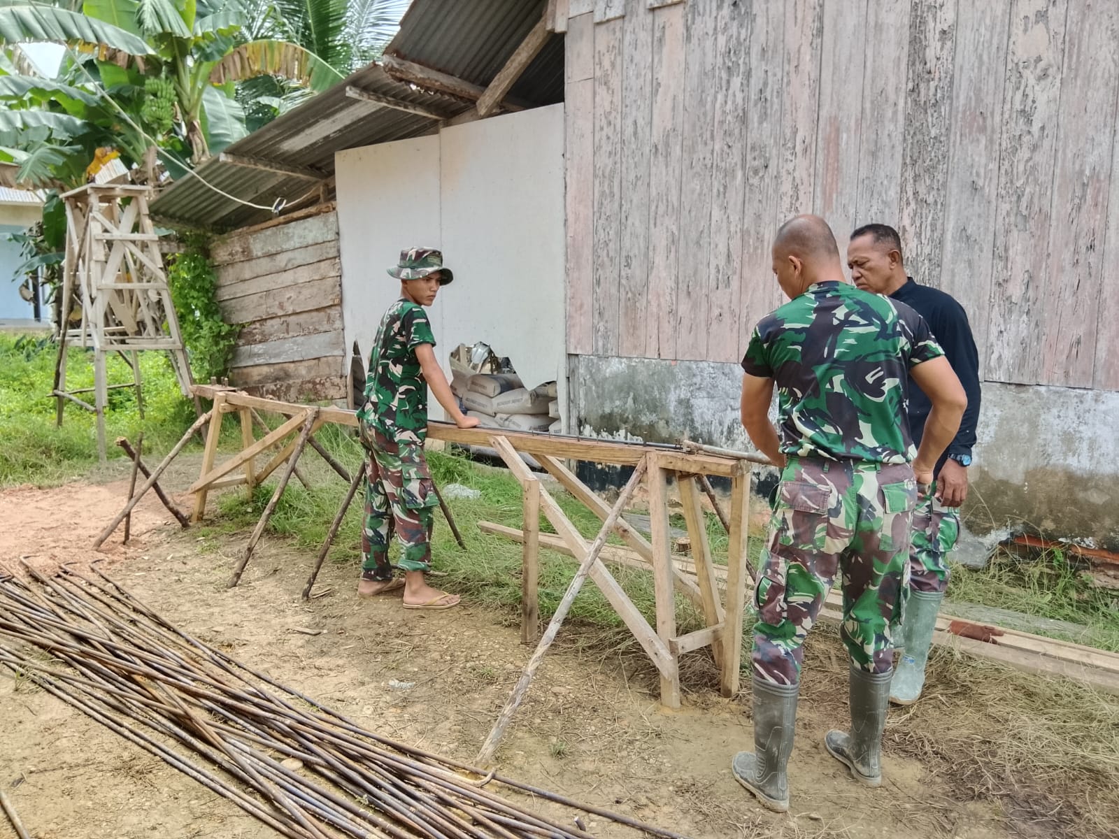 Salah satu fokus utama kegiatan hari ini adalah perakitan rangka besi yang akan digunakan sebagai penguat bangunan fisik. Keterampilan para prajurit dalam mengolah material konstruksi ini menjadi kunci utama guna memastikan hasil pembangunan memiliki daya tahan yang maksimal bagi masyarakat setempat.