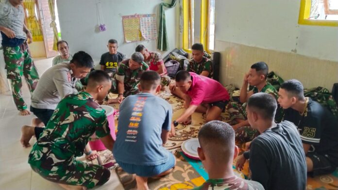 Di bawah naungan atap sederhana usai memeras keringat di lokasi sasaran fisik, canda gurau mengalir hangat di antara para abdi negara ini. Momen ini bukan sekadar istirahat melepas penat, melainkan bukti nyata bahwa solidaritas dan sinergitas TNI-Polri bukan hanya slogan, melainkan ikatan batin yang dipupuk dari kesederhanaan piring yang sama.