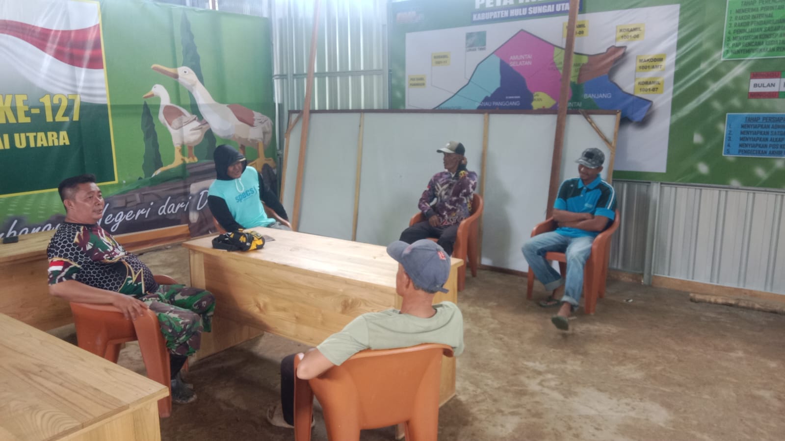 Amuntai – Bertempat di lokasi kegiatan TMMD ke-127 Kodim 1001/HSU, Desa Hambuku Hulu, Kecamatan Sungai Pandan, Kabupaten Hulu Sungai Utara, Senin (02/03/2026), Satgas TMMD melaksanakan kegiatan komunikasi sosial (komsos) bersama masyarakat setempat.