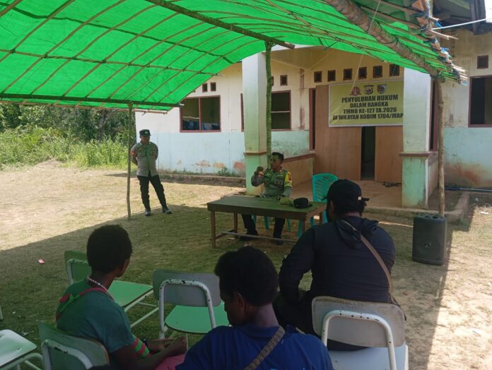 Mappi – Dalam rangka mendukung pembangunan berkelanjutan dan meningkatkan pengetahuan masyarakat tentang hukum, Satgas TMMD ke-127 Kodim 1704/Mappi menggelar kegiatan penyuluhan hukum di Kampung Yibin, Distrik Venaha. Kegiatan ini berlangsung pada hari Selasa, 4 Maret 2026.