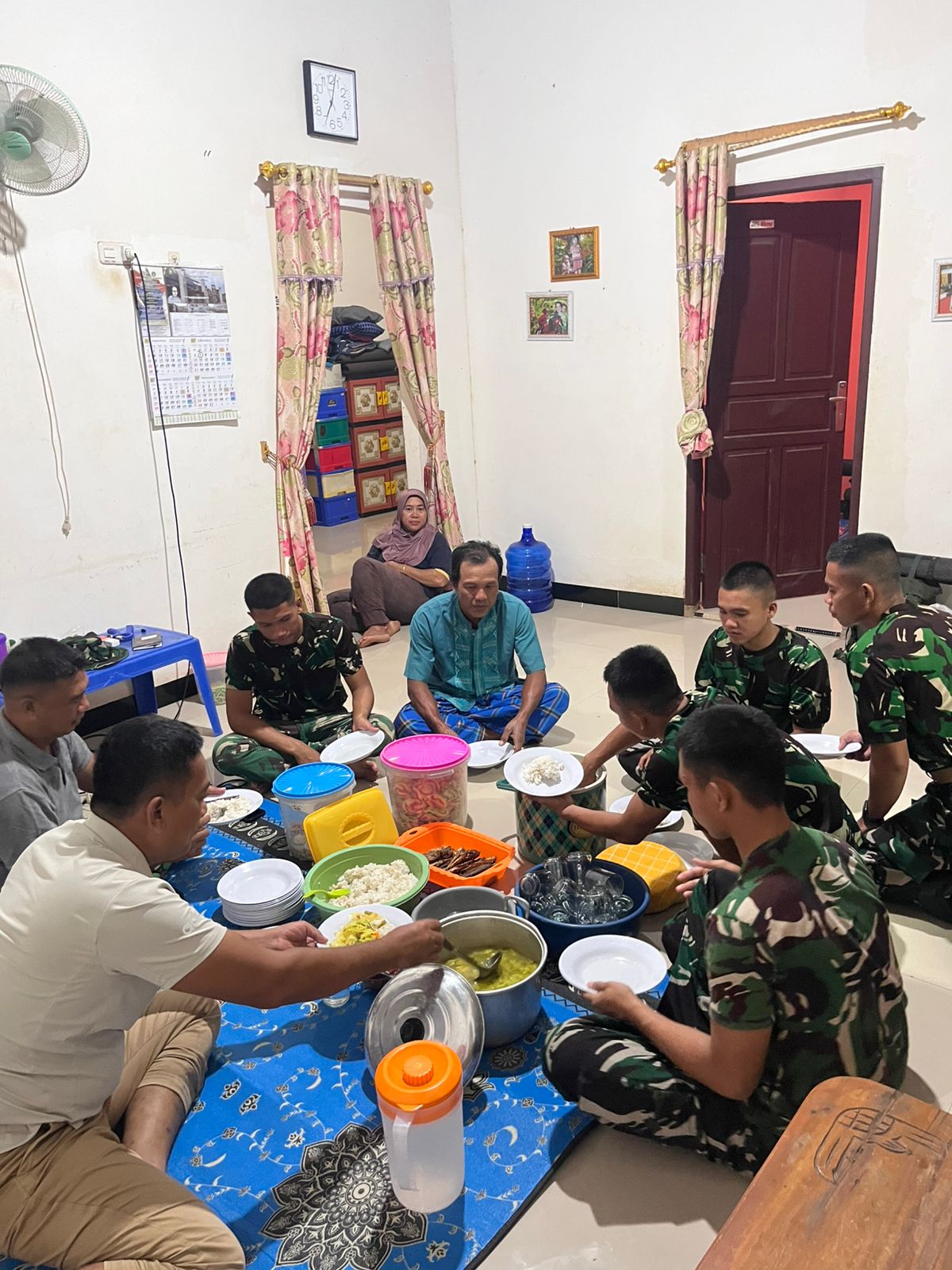 Bapak Sikun, yang menjadi tuan rumah bagi anggota Satgas TMMD, mengungkapkan kebahagiaannya atas kehadiran para prajurit di desanya. “Kami sangat senang bisa menerima bapak-bapak TNI di rumah kami. Makan bersama ini sudah seperti keluarga sendiri. Kami merasa terbantu dengan kehadiran mereka,” ujarnya.