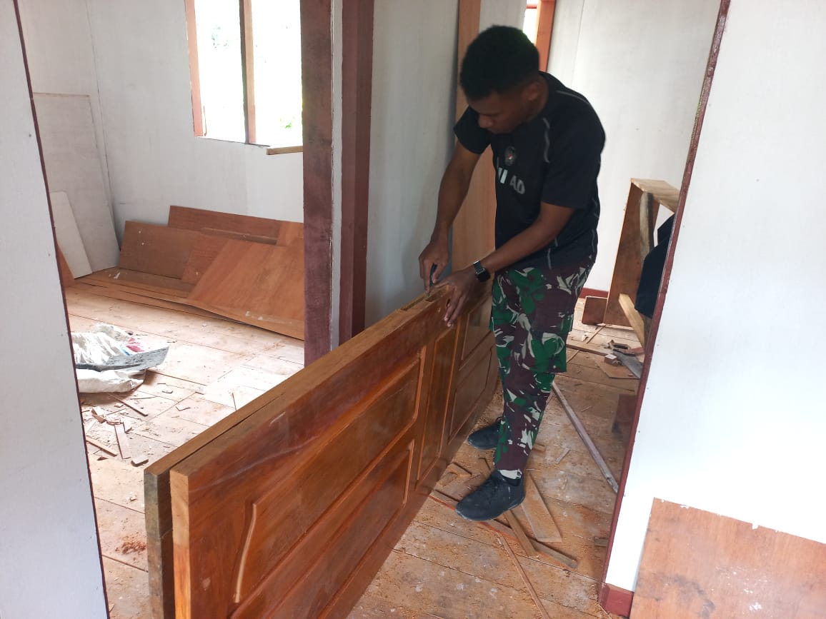 Kegiatan tersebut menunjukkan perkembangan yang signifikan dengan capaian progres pembangunan mencapai 90 persen. Pada tahap kali ini, personel Satgas TMMD melaksanakan pemasangan pintu rumah pada bangunan yang telah rampung pada tahap sebelumnya.