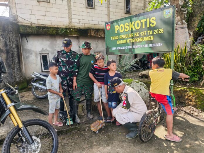 KEBUMEN — Pagi di Desa Somagede, Kecamatan Sempor, Kabupaten Kebumen, Sabtu (28/02/2026), turun dengan teduh yang menenangkan. Kabut tipis masih menggantung di atas pematang, ketika suasana Pos Komando Taktis (Poskotis) TMMD perlahan berubah riuh oleh langkah-langkah kecil yang berlarian mendekat.