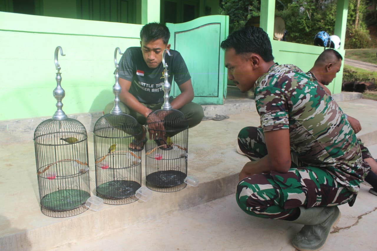 Di sela waktu istirahat, kicau merdu burung pleci yang digantung di dekat lokasi kerja menjadi pelepas penat bagi para prajurit. Suara burung yang riang menghadirkan suasana santai dan menyegarkan semangat sebelum kembali melanjutkan pekerjaan bersama warga.