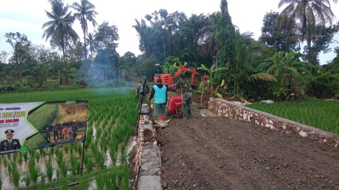 Amuntai – Pembangunan jalan usaha tani dalam program TMMD ke-127 yang dilaksanakan Kodim 1001/HSU di Desa Hambuku Hulu terus menunjukkan perkembangan signifikan. Hingga Rabu (25/02/2026), progres pekerjaan pembuatan siring (saluran drainase) di sisi kanan dan kiri jalan telah mencapai sekitar 50 persen.