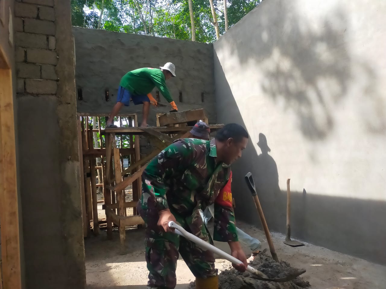 Pekerjaan plester dinding ini merupakan tahapan penting dalam pembangunan rumah, karena akan memberikan perlindungan dari cuaca, memperkuat struktur bangunan, dan memberikan tampilan yang lebih rapi dan indah. Satgas TMMD bersama masyarakat setempat terus bekerja keras menyelesaikan plester dinding dengan cermat dan teliti, memastikan agar hasilnya kuat, rapi, dan sesuai dengan standar konstruksi.