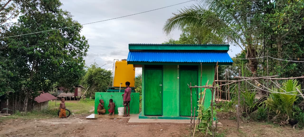 Fasilitas MCK yang kini berdiri kokoh, lengkap dengan tandon air berwarna kuning cerah di atas tiang penyangga, menjadi pemandangan baru yang paling disambut gembira .