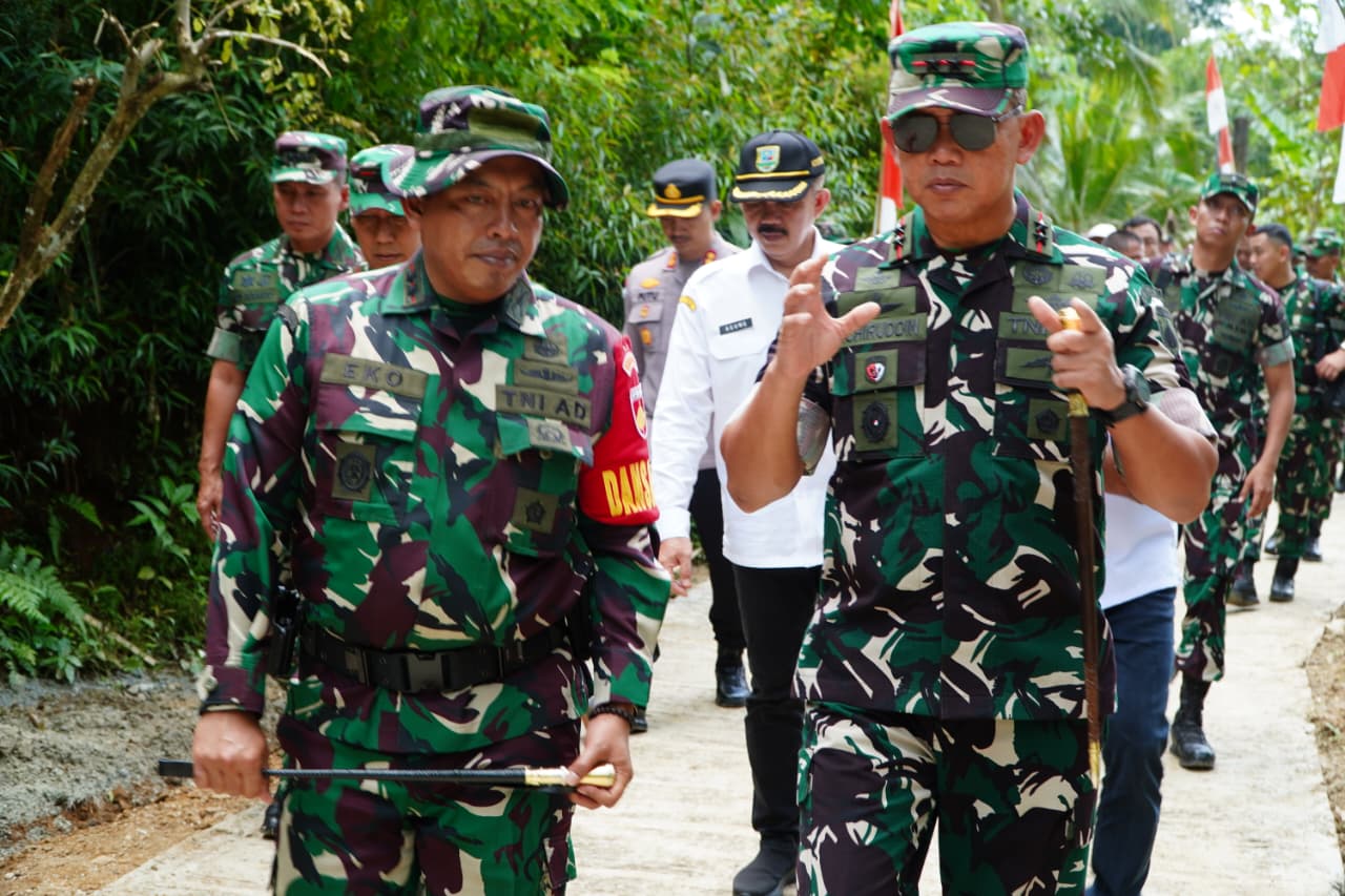 Di sela peninjauan, Pangdam memberikan apresiasi atas kerja keras Satgas TMMD dan partisipasi aktif masyarakat yang bergotong royong selama pelaksanaan program. Menurutnya, TMMD bukan hanya membangun infrastruktur, tetapi juga memperkuat kemanunggalan TNI dan rakyat dalam membangun desa.