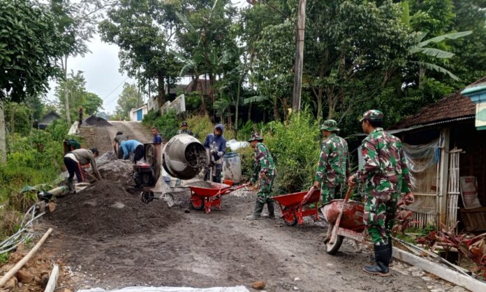 Pemandangan Unik di Wonogiri, Satgas TMMD ke-127 Kodim 0728/Wonogiri dan Warga Kembang Bahu Membahu Cor Jalan Desa