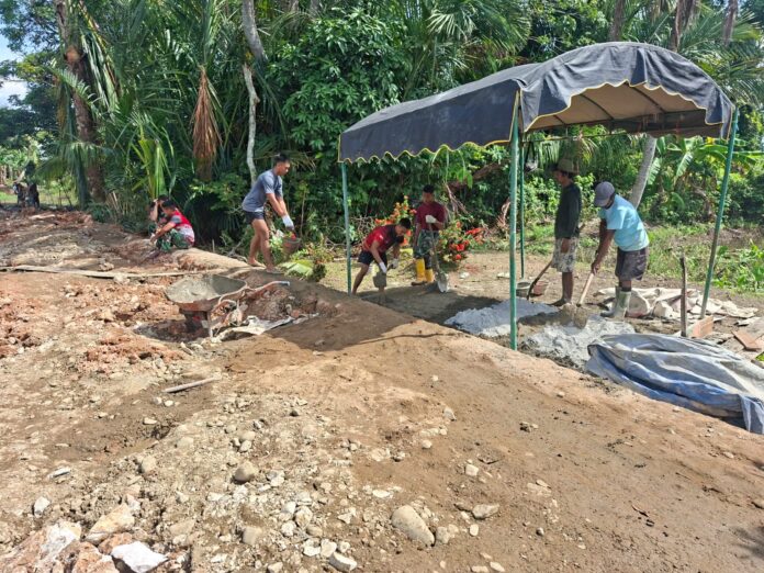 Amuntai – Satgas TNI Manunggal Membangun Desa (TMMD) ke-127 Kodim 1001/HSU-BLG terus menggenjot pengerjaan pembuatan siring pada jalan usaha tani di Desa Hambuku Hulu, Kecamatan Sungai Pandan, Kabupaten Hulu Sungai Utara. Pengerjaan tersebut dilakukan guna memperlancar sistem drainase sekaligus memperkuat konstruksi jalan. Senin (09/03/2026)