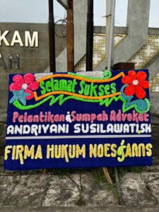 Haiyul Qoiyum,SH.MH dan Vani Krisnawati,SE.SH.MH di Tunjuk oleh Dewan pimpinan pusat Peradi Nusantara,Ronald Samuel Waisun,SH MH.SE.MM.ME MTH untuk menghadiri pelaksanaan Sumpah di Pengadilan Tinggi Palembang Sumatera Selatan