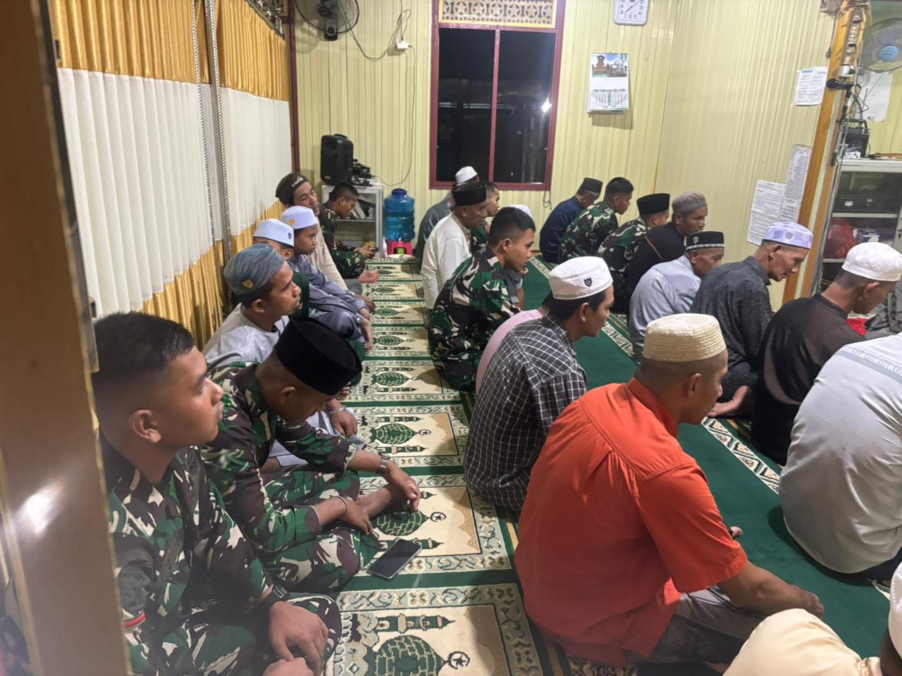Hal ini juga diwujudkan oleh personel Satgas TMMD Reguler ke-127 Kodim 1001/HSU yang tengah melaksanakan program TMMD di Desa Hambuku Hulu, Kecamatan Sungai Pandan, Kabupaten Hulu Sungai Utara. Pada Jumat malam (20/2/2026), para anggota Satgas mengadakan Shalat Tarawih dan Tadarus Al-Qur’an bersama warga di Langgar Jamaah Darul Khair Desa Hambuku Hulu.