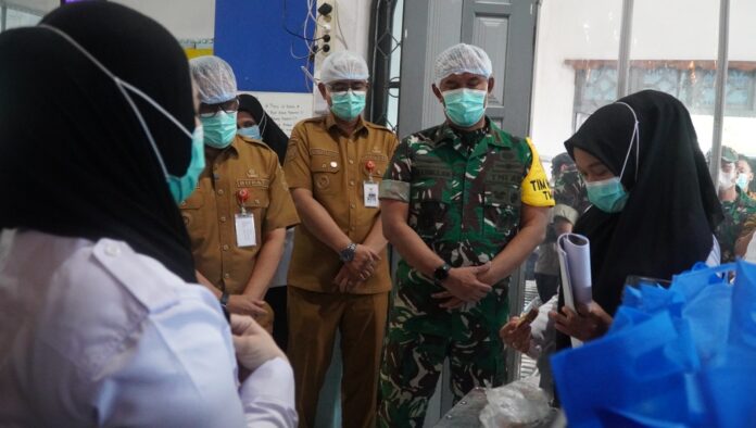Amuntai – Usai disambut Forum Koordinasi Pimpinan Daerah (Forkopimda) Kabupaten Hulu Sungai Utara dan menerima paparan pelaksanaan kegiatan, Tim Pengawasan dan Evaluasi (Wasev) TMMD ke-127 TNI Manunggal Membangun Desa melanjutkan agenda dengan meninjau dapur Program Makan Bergizi Gratis (MBG), Selasa (03/03/2026).