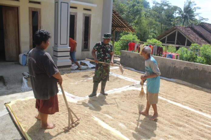Kebumen – Hamparan padi yang dijemur di halaman rumah warga Desa Somagede menjadi pemandangan khas di musim panen. Di tengah kesibukan program TMMD Reguler ke-127 Kodim 0709/Kebumen, seorang prajurit tampak berhenti sejenak dari pekerjaan fisik dan menghampiri warga yang sedang menjemur padi, Jumat (06/03/2026).