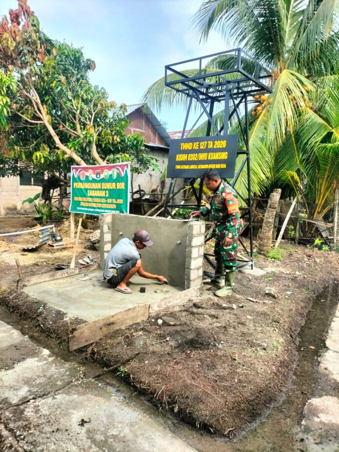 Kuantan Singingi – Program TNI Manunggal Membangun Desa (TMMD) ke-127 Kodim 0302/Inhu terus berupaya meningkatkan akses air bersih bagi masyarakat. Pada hari Selasa, 24 Februari 2026, kegiatan TMMD difokuskan pada pembuatan sumur bor di Dusun 2 Desa Koto Rajo, Kecamatan Kuantan Hilir Seberang, Kabupaten Kuantan Singingi. Dengan fokus pada pemasangan batako dan pembuatan tempat kran air.