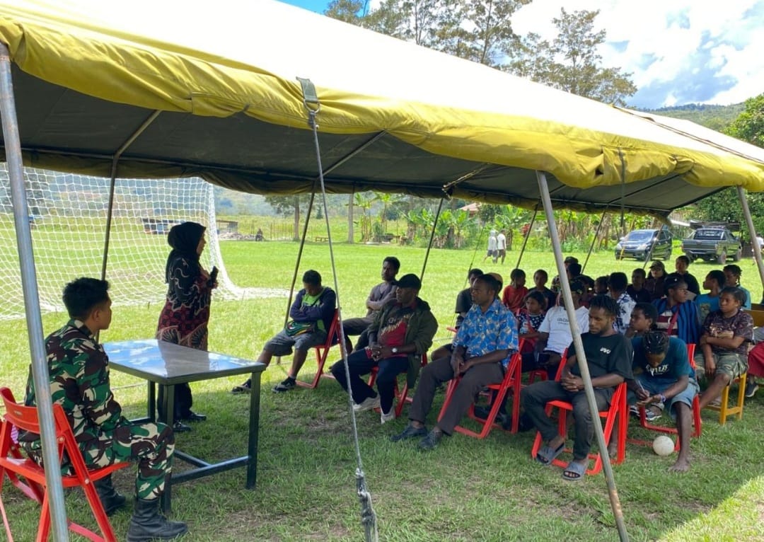 Pelaksanaan penyuluhan diikuti oleh masyarakat setempat bersama tenaga kesehatan dari Kodim 1702/Jayawijaya, dengan dukungan penuh personel Satgas TMMD.