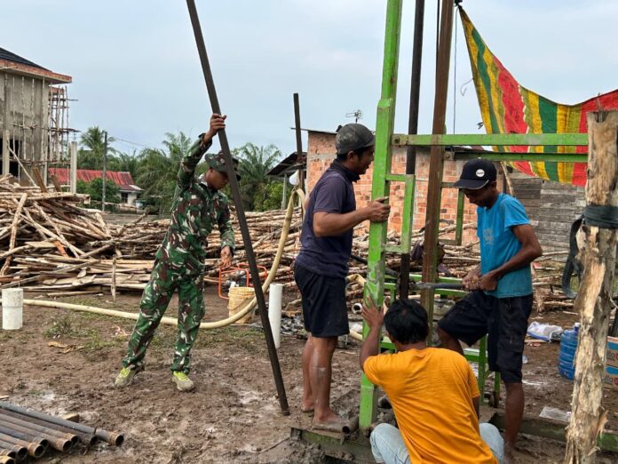 BANYUASIN – Anggota Satuan Tugas (Satgas) TNI Manunggal Membangun Desa (TMMD) ke-127 Kodim 0430/Banyuasin (BA) bersama masyarakat Desa Wonosari bahu-membahu mempercepat pengerjaan pembangunan sumur bor. Semangat gotong royong ini menjadi kunci utama dalam mewujudkan harapan masyarakat untuk mendapatkan akses air bersih yang memadai.