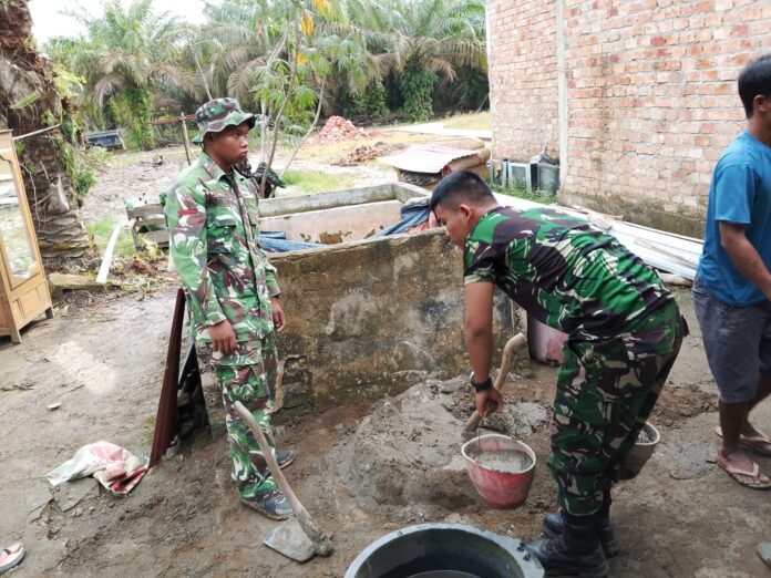 BANYUASIN – Satuan Tugas (Satgas) TNI Manunggal Membangun Desa (TMMD) ke-127 Kodim 0430/Banyuasin (BA) bersama masyarakat Desa Wonosari terus memacu pengerjaan rehabilitasi Rumah Tidak Layak Huni (RTLH) milik Ibu Suwarti. Pemasangan bata dikebut agar pembangunan dapat selesai sebelum penutupan TMMD 127.