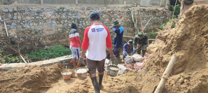 Kendari – Semangat gotong royong terpancar kuat di lokasi TNI Manunggal Membangun Desa (TMMD) ke-127 Kodim 1417/Kendari. Pada Senin (16/2), personel Satgas TMMD bersama warga Kelurahan Anggoeya, Kecamatan Poasia, tampak kompak bekerja sama mencampur material semen dan pasir.