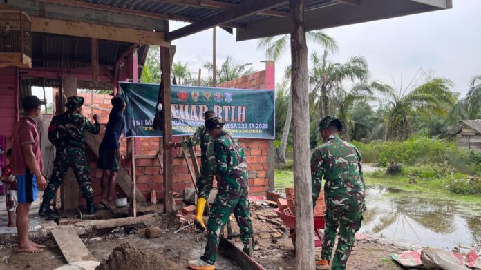 Banyuasin – Satuan Tugas (Satgas) TNI Manunggal Membangun Desa (TMMD) ke-127 bersama masyarakat Desa Wonosari terus memacu pengerjaan rehabilitasi Rumah Tidak Layak Huni (RTLH) milik Bapak Paiman. Saat ini, fokus utama adalah pemasangan kusen pintu dan jendela, sebagai bagian penting dalam mewujudkan rumah yang layak huni.