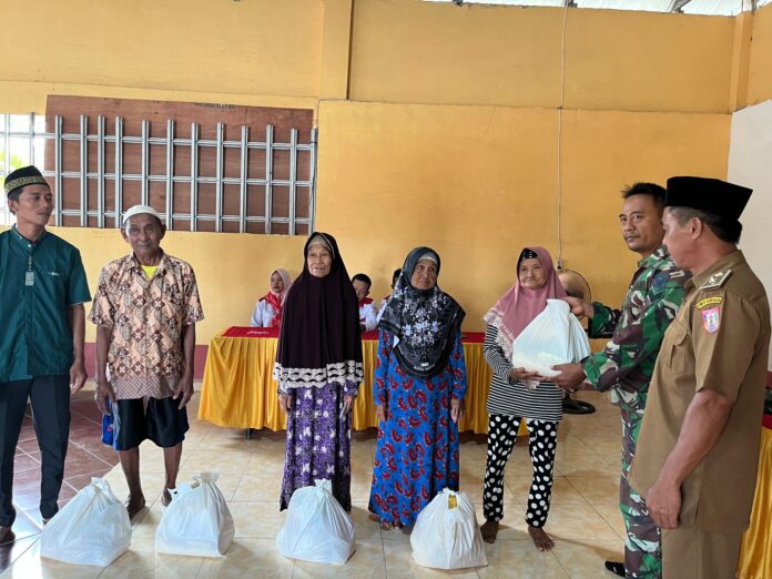 BANYUASIN – Satuan Tugas (Satgas) TMMD ke-127 dari Kodim 0430/Banyuasin bekerja sama dengan Pemerintah Desa Wonosari, Kecamatan Pulau Rimau, melaksanakan kegiatan pembagian sembako kepada lansia di desa tersebut. Kegiatan ini berlangsung sebagai bentuk kepedulian dan perhatian terhadap warga lanjut usia yang membutuhkan, sekaligus mempererat tali silaturahmi antara TNI dan masyarakat.Rabu (4/3).