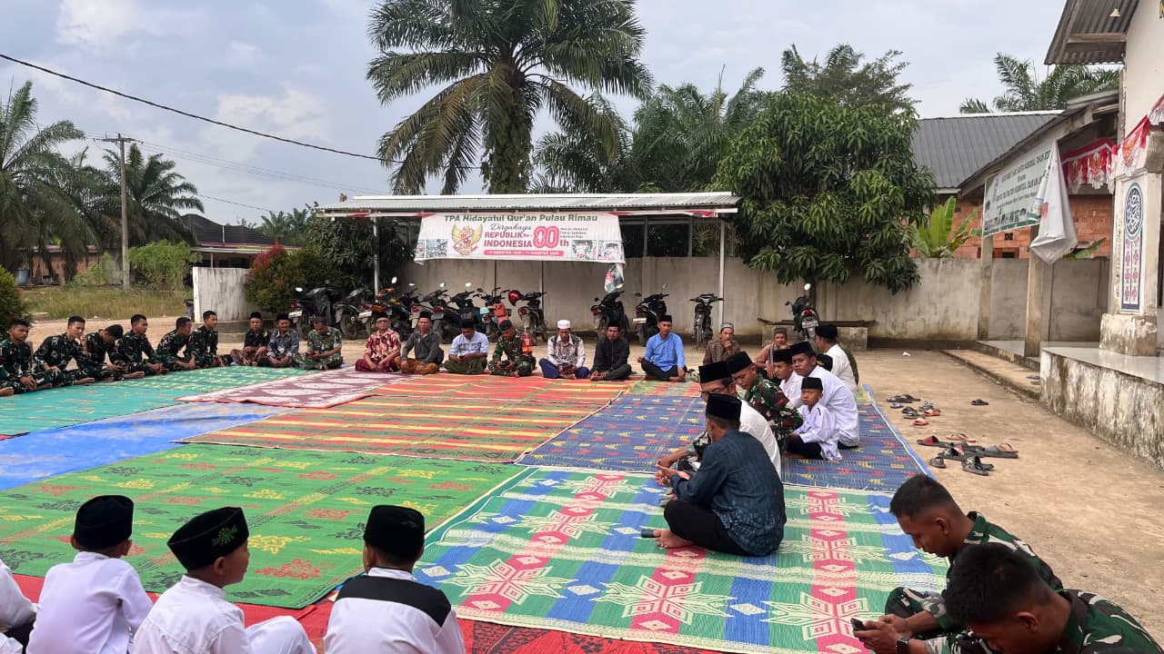 SATGAS TMMD 127 KODIM 0430/BANYUASIN BUKA PUASA BERSAMA MASYARAKAT DAN SEKOLAH TK-TPA HIDAYATUL QUR’AN DESA WONOSARI