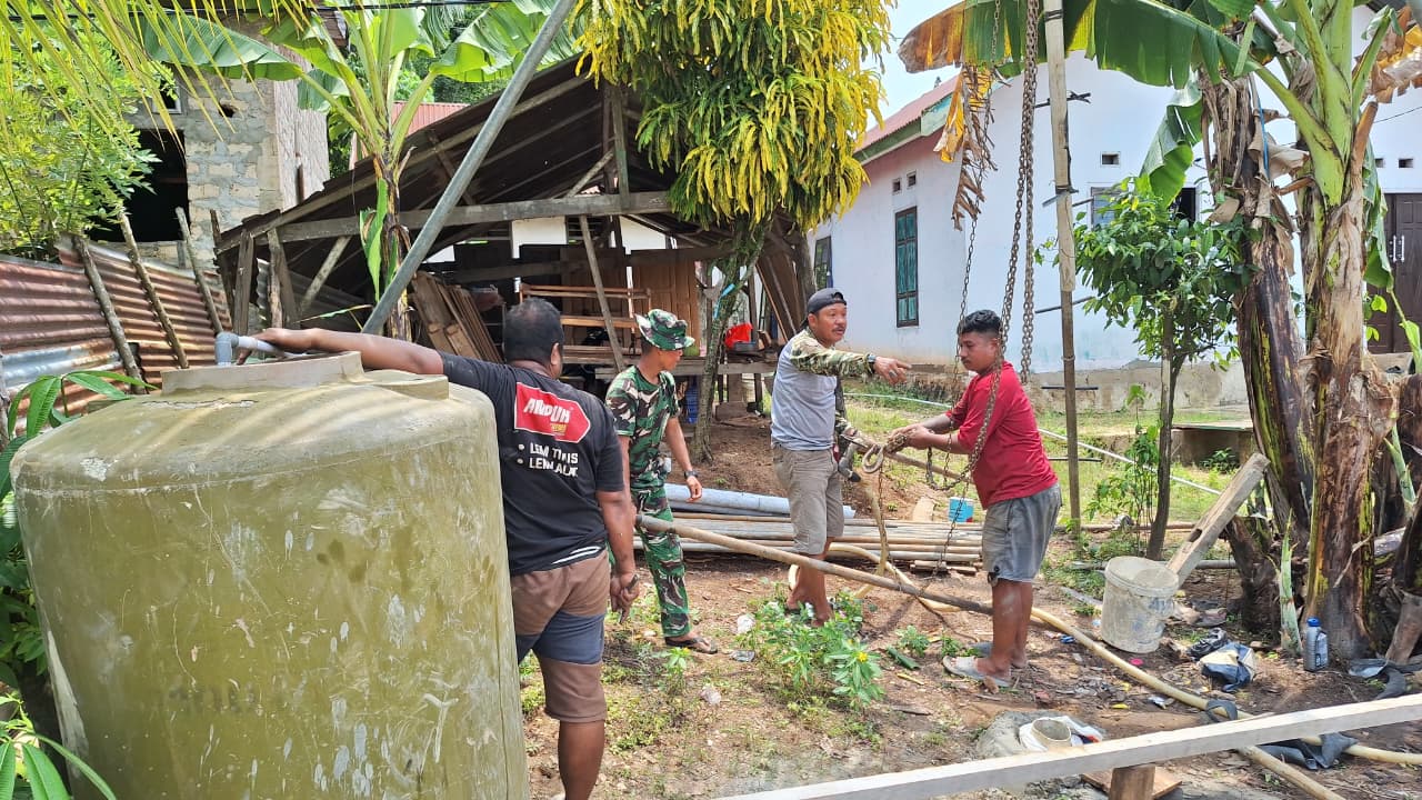 Terpantau semangat gotong royong yang kuat saat anggota Satgas dan warga bahu-membahu melakukan pencarian serta penggalian titik sumber air bersih.