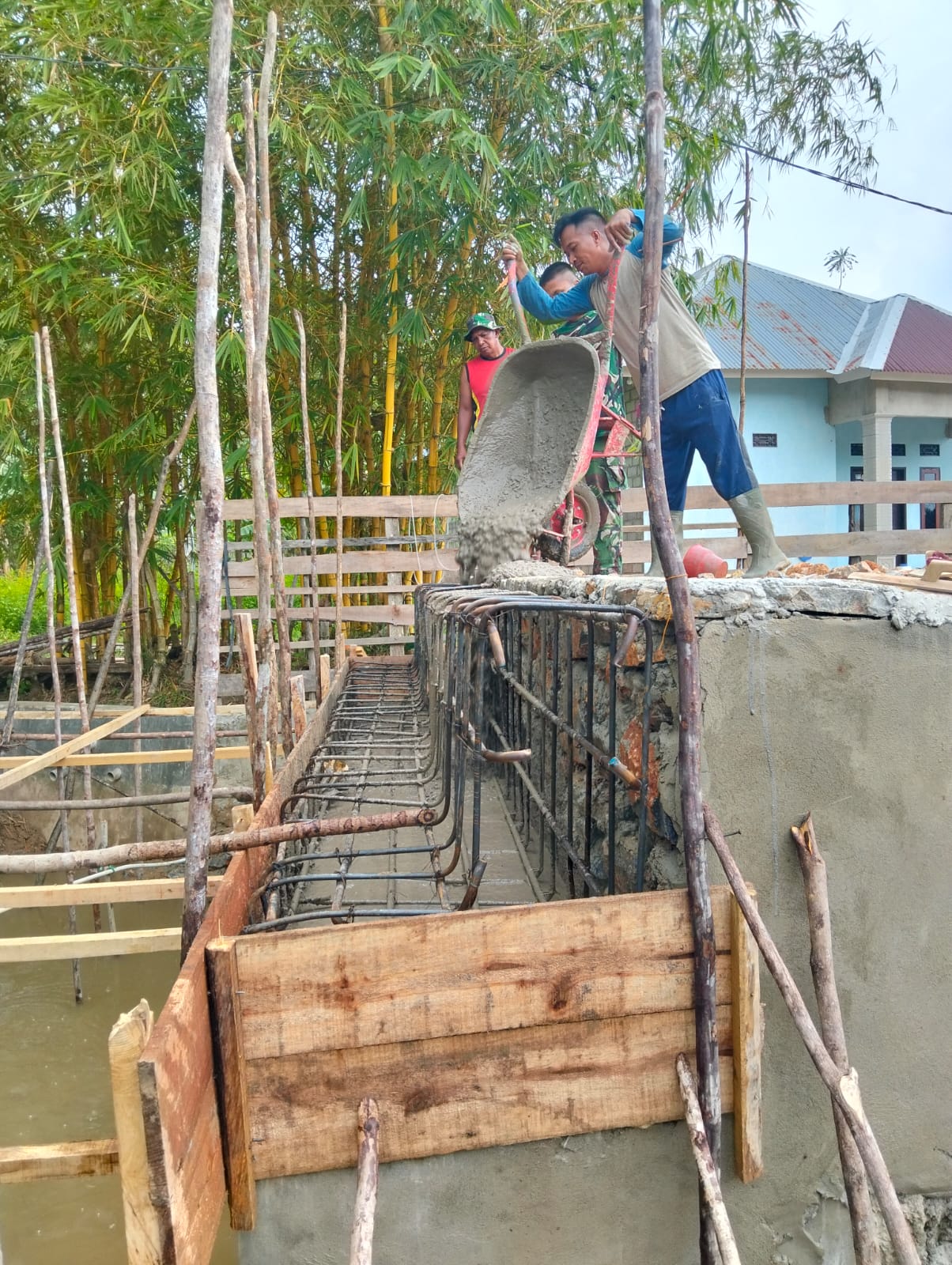 Langkah ini merupakan bagian krusial dari program fisik TMMD guna memastikan struktur penghubung tersebut memiliki daya tahan yang kuat untuk mobilitas masyarakat di masa mendatang. Pengecoran ini dilakukan dengan semangat gotong royong yang tinggi demi mengejar target penyelesaian program tepat waktu.