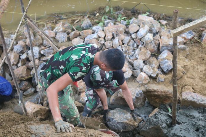Kendari – Memasuki hari-hari krusial, personel Satgas TMMD ke-127 Kodim 1417/Kendari terus menunjukkan dedikasi tinggi dalam mempercepat pembangunan talud di Kelurahan Anggoeya, Kota Kendari, Selasa (3/3).