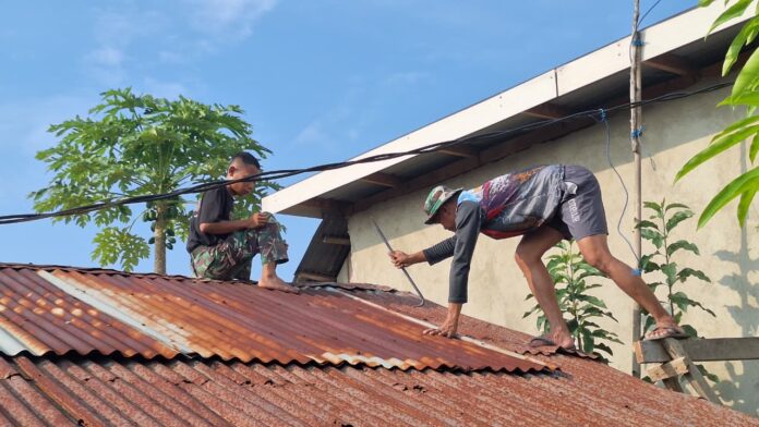 BerandaTNISatgas TMMD 127 Kodim 1417/Kendari Mulai Bongkar Atap RTLH Unit Ke-4 di...