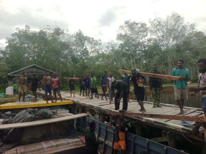 Mappi – Pelaksanaan TMMD (TNI Manunggal Membangun Desa) ke-127 di Kampung Yibin, Distrik Venaha, Kabupaten Mappi, Provinsi Papua Selatan memasuki hari ke-8 pada Selasa, 17 Februari 2026. Salah satu kegiatan utama pada hari tersebut adalah pelangsiran material bangunan dari pelabuhan Keppi menuju lokasi-lokasi pembangunan di kampung Yibin.