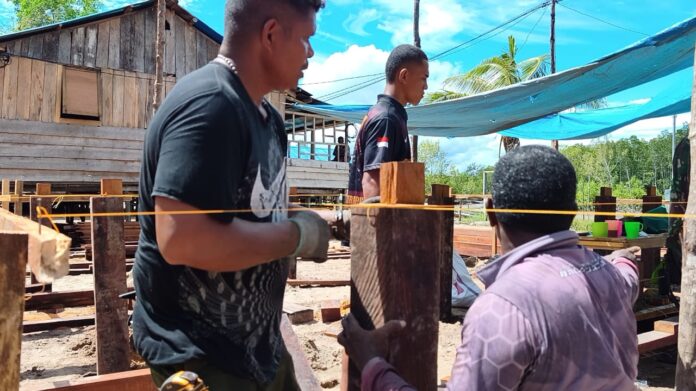 Semangat Kebersamaan, Satgas TMMD dan Warga Bangun Rumah Warga di Kampung Keakwa