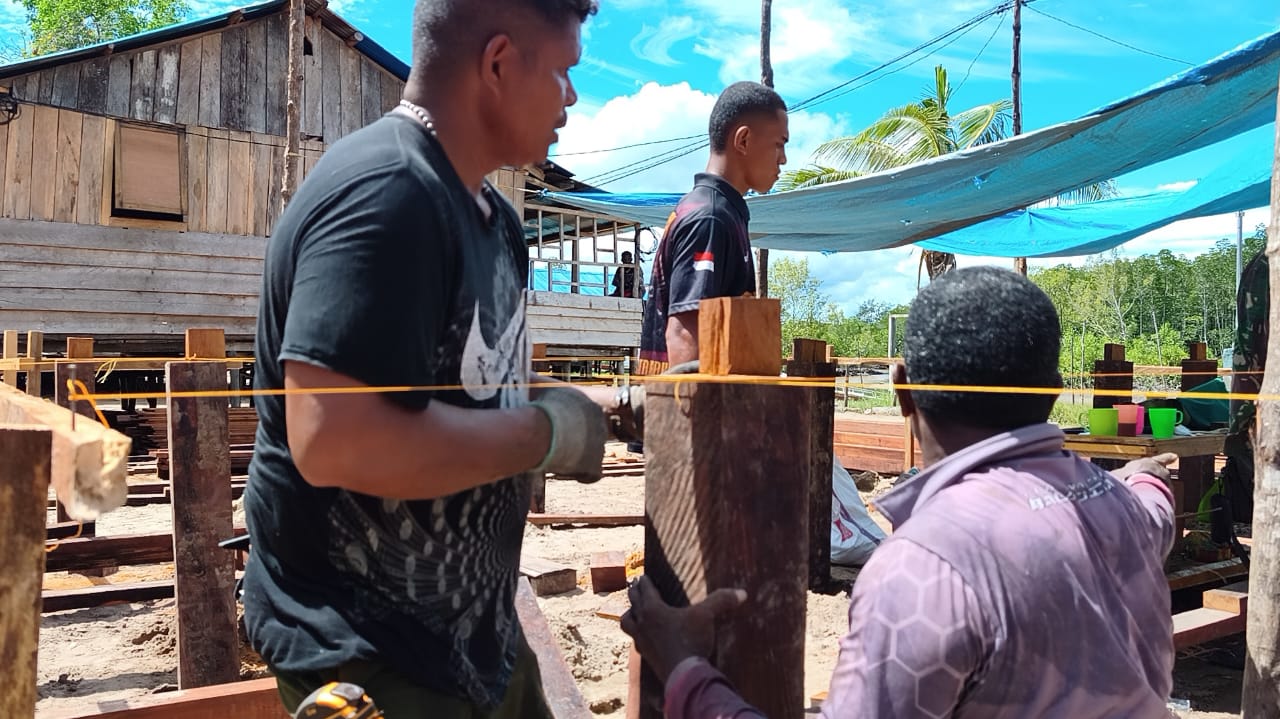 BerandaTNISemangat Kebersamaan, Satgas TMMD dan Warga Bangun Rumah Warga di Kampung Keakwa