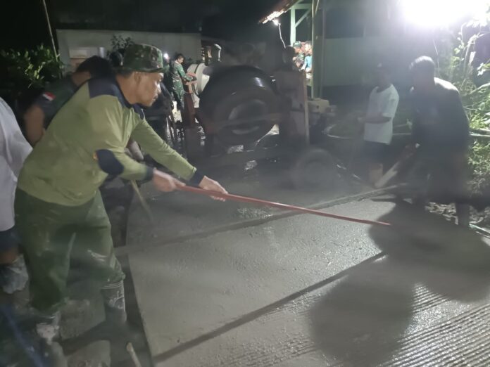 Semangat Tak Padam di Bawah Langit Malam, Satgas TMMD Kebumen Kebut Rabat Beton Bersama Warga