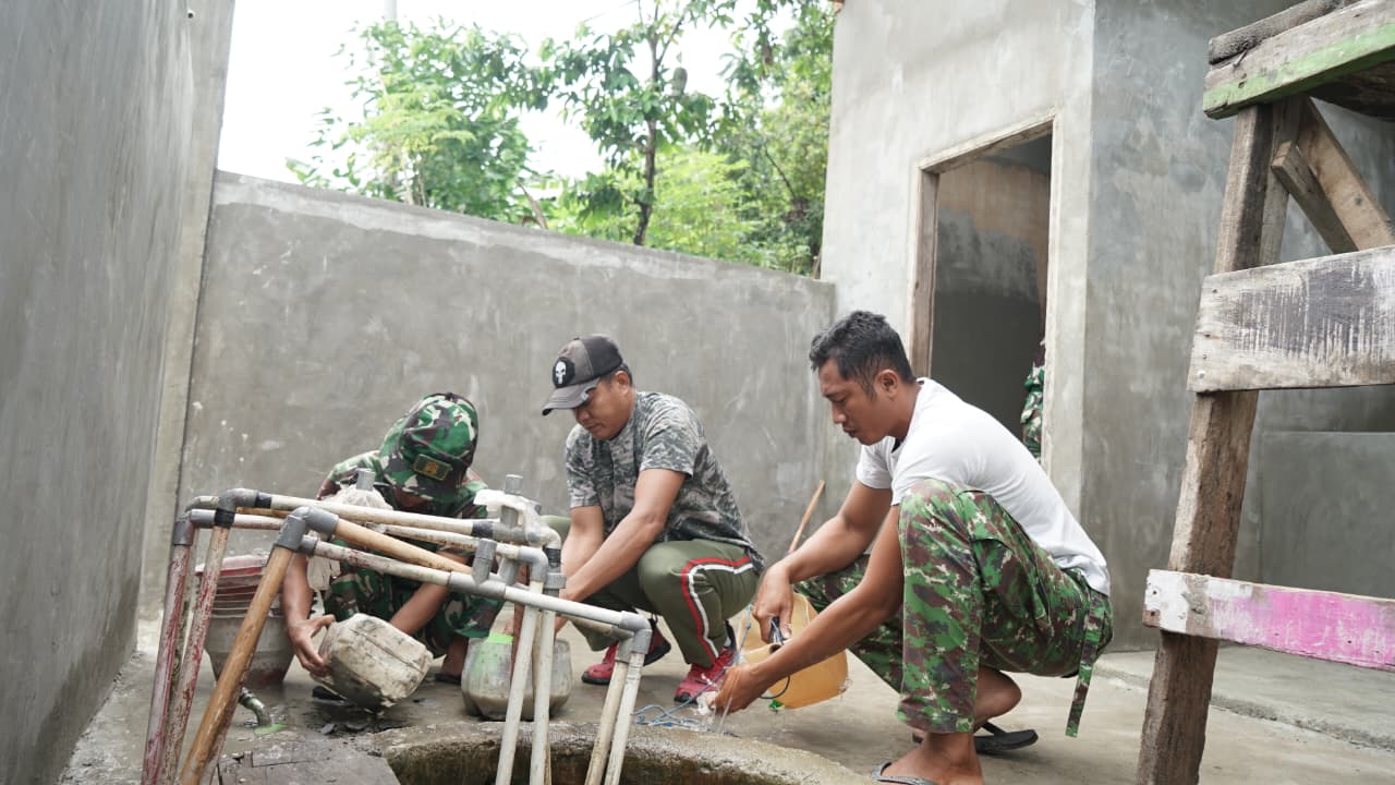 ​KENDARI – Memasuki tahap penyelesaian yang lebih detail, personel Satuan Tugas (Satgas) TMMD ke-127 Kodim 1417/Kendari kini mulai melaksanakan proses pengacian dinding pada fasilitas Mandi, Cuci, Kakus (MCK) di Kelurahan Sambuli, Rabu (4/3).