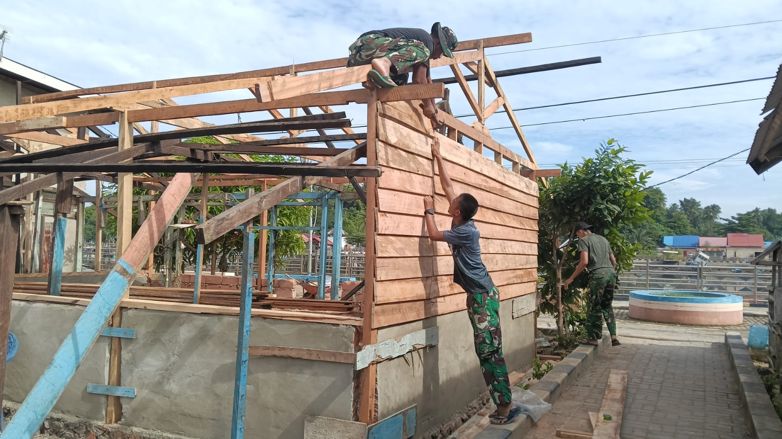 Pengerjaan dinding kayu ini merupakan salah satu tahap krusial dalam transformasi hunian milik warga yang sebelumnya kurang memadai. Meski di bawah terik matahari, semangat kemanunggalan TNI dan rakyat tampak jelas dalam setiap paku yang ditancapkan.