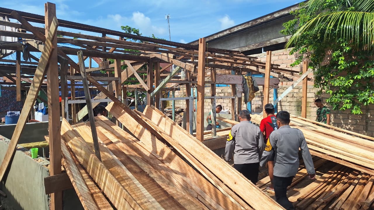 Tanpa sekat, aparat berseragam loreng dan cokelat ini menunjukkan sinergitas tanpa batas dalam mempercepat pembangunan rumah layak huni (RTLH).
