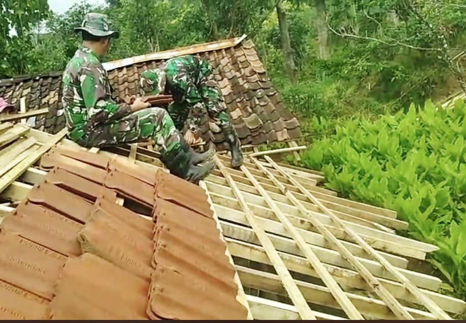 BerandaTNITak Diragukan Lagi, Satgas TMMD 127 Kodim Wonogiri Cekatan Rehab Atap Rumah...