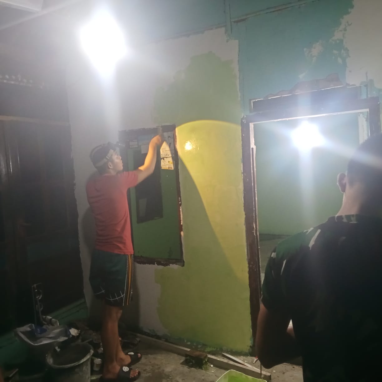 Pada malam hari, suasana di lokasi pembangunan rumah semakin hidup. Anggota Satgas dan warga desa terlihat bekerja keras dengan penuh semangat, melakukan berbagai pekerjaan mulai dari pengecoran, pemasangan dinding, hingga pengecatan. Mereka bekerja dengan alat seadanya dan tanpa mengenal lelah, menunjukkan komitmen tinggi dalam menyelesaikan pekerjaan tepat waktu.