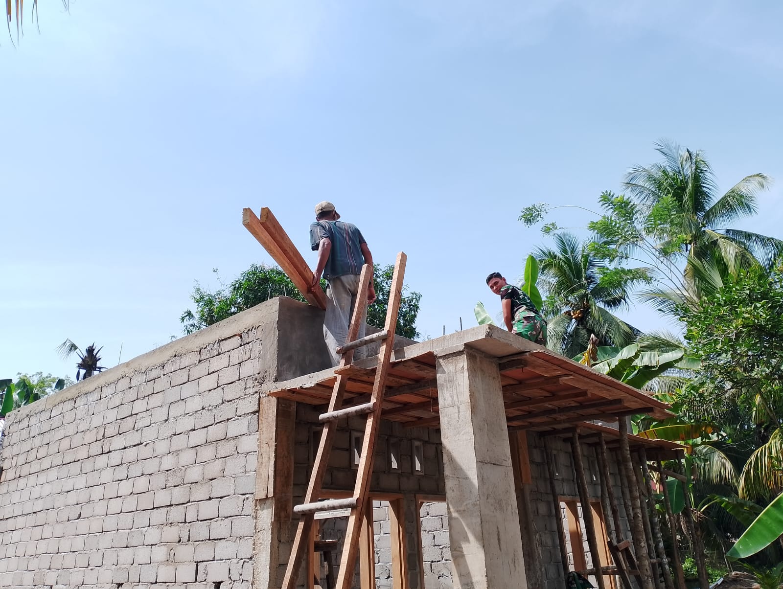 Pemasangan kuda-kuda atap ini merupakan tahapan penting dalam pembangunan rumah, karena akan menjadi penopang utama atap rumah. Satgas TMMD bersama masyarakat setempat bekerja sama melaksanakan kegiatan ini dengan cermat dan teliti, memastikan agar kuda-kuda atap terpasang dengan kuat dan kokoh.