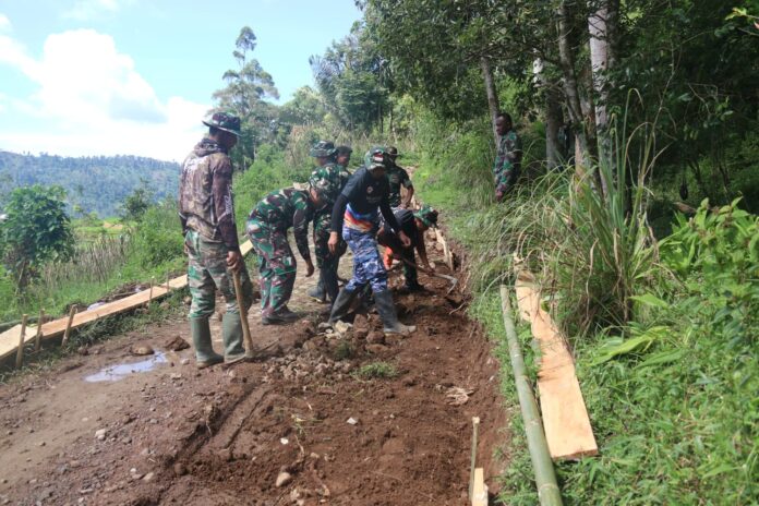 Rancabali, Kab. Bandung – Program TNI Manunggal Membangun Desa (TMMD) Reguler ke-127 di Desa Cipelah, Kecamatan Rancabali, Kabupaten Bandung terus menunjukkan progres positif. Pada hari Rabu, 11 Februari 2026, pukul 08.00 WIB, Danramil 2414/Ciwidey Kapten Inf Supriyadi bersama anggota Satgas TMMD dan masyarakat Desa Cipelah bahu-membahu melaksanakan pemasangan papan begisting dan pengecoran jalan di titik 1300. Semangat gotong royong terlihat jelas saat Satgas dan warga bekerja sama menyelesaikan tugas.