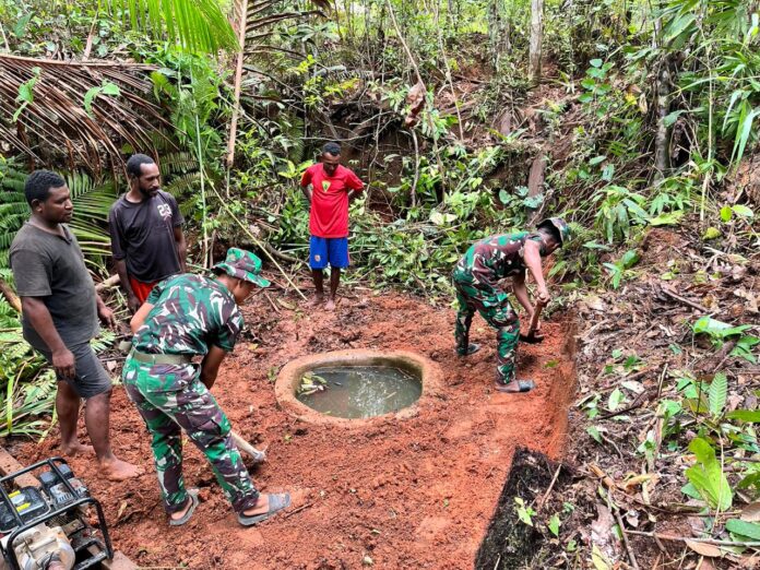 Mappi – Satgas TMMD (TNI Manunggal Membangun Desa) ke-127 Kodim 1704/Mappi terus berupaya meningkatkan kesejahteraan masyarakat Kampung Yibin, Distrik Venaha, Kabupaten Mappi, salah satunya melalui program penyediaan air bersih. Pada hari ke-12 pelaksanaan TMMD, Sabtu (21/2/2026), Satgas fokus pada pengecoran rabat sumur air bersih di RT.02, yang merupakan sumber air utama bagi masyarakat setempat.
