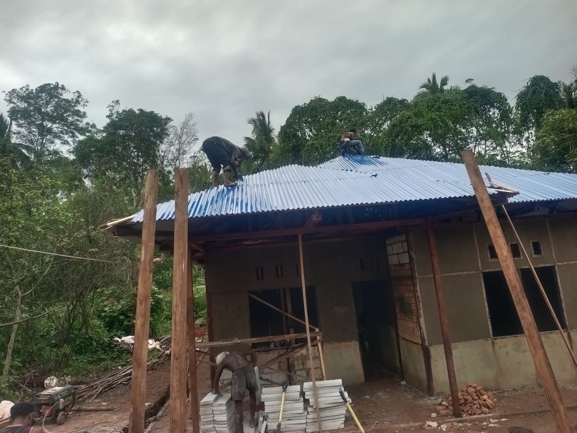 Meskipun cuaca di wilayah Kp. Yibin pada pagi hari diguyur hujan, namun tidak menyurutkan semangat Satgas TMMD dan warga setempat untuk terus bekerja. Pemasangan seng dilakukan dengan hati-hati dan teliti, memastikan atap rumah dapat melindungi keluarga Bapak Fransiskus dari panas dan hujan. Sementara itu, plester dinding dalam rumah juga terus dikerjakan, meratakan permukaan dinding dan memberikan tampilan yang lebih rapi dan nyaman.