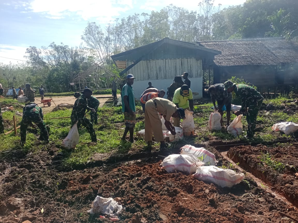Mappi, Papua Selatan – Satgas TMMD ke-127 Kodim 1704/Mappi terus berupaya meningkatkan kualitas hidup masyarakat Kampung Yibin dengan memulai pembangunan pondasi rumah dan MCK. Pembangunan MCK ini berlokasi strategis di belakang Gereja Kampung Yibin, sehingga memudahkan akses bagi masyarakat untuk menjaga kebersihan diri dan lingkungan. Dengan adanya MCK yang layak, diharapkan masalah sanitasi yang selama ini menjadi kendala di Kampung Yibin dapat teratasi.