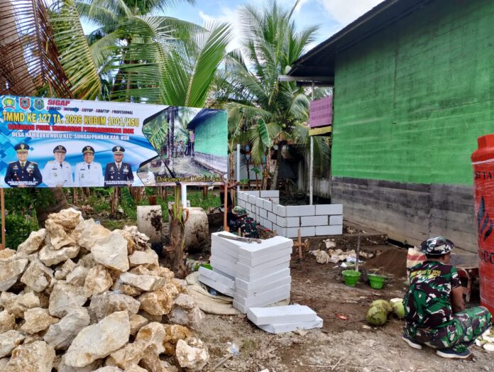 Hulu Sungai Utara – Satgas TNI Manunggal Membangun Desa (TMMD) ke-127 Kodim 1001/HSU-BLG melaksanakan pembangunan fasilitas Mandi, Cuci, Kakus (MCK) di TPA Al Ikhlas serta Musholla/Langgar Darul Ibadah yang berlokasi di Desa Hambuku Hulu, Kecamatan Sungai Pandan, Kabupaten Hulu Sungai Utara, Rabu (11/02/2026).