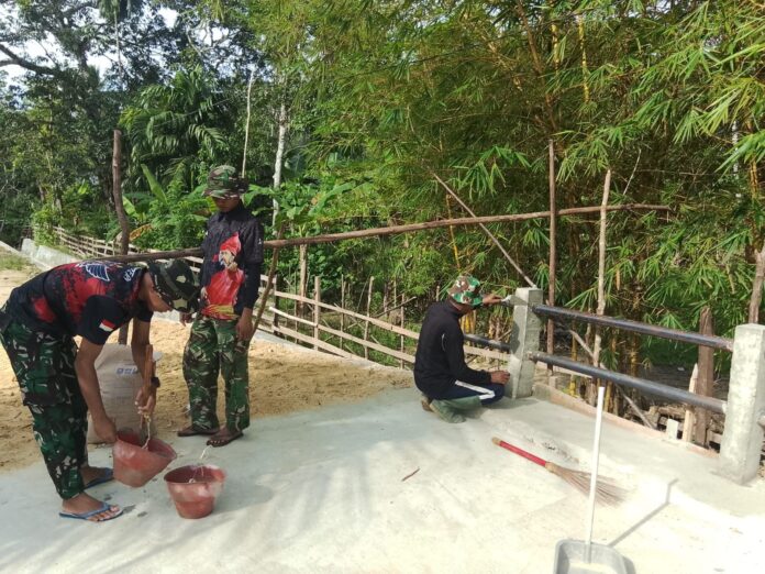 Kendari – Personel Satgas TMMD 127 Kodim 1417/Kendari terus menunjukkan dedikasi nyata melalui pengerjaan tahap pengacian pada struktur jembatan di Kelurahan Sambuli, Kota Kendari, Senin (9/3).