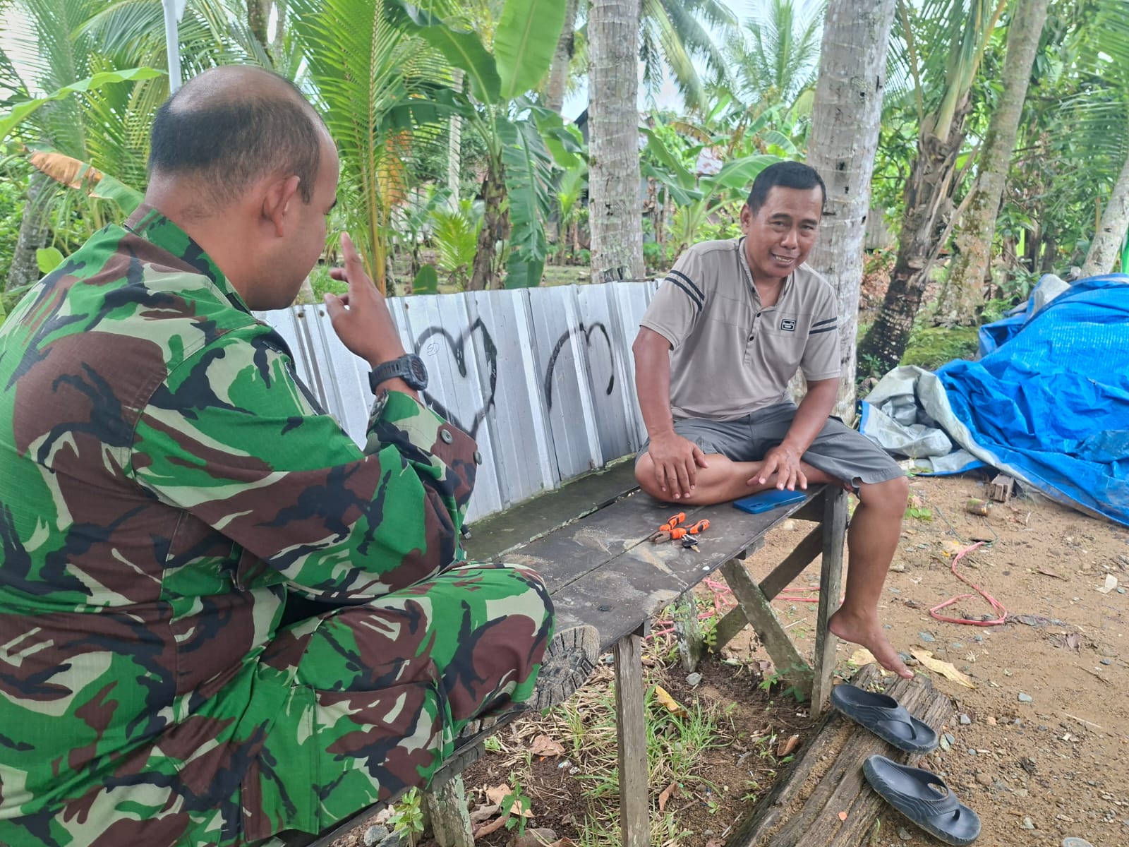 Dalam suasana penuh keakraban, Letda Inf Dian Pramono berdialog langsung dengan warga guna menyerap aspirasi, masukan, dan harapan masyarakat terkait pembangunan yang tengah berlangsung. Ia menegaskan bahwa keberhasilan program TMMD sangat bergantung pada dukungan serta partisipasi aktif masyarakat setempat.